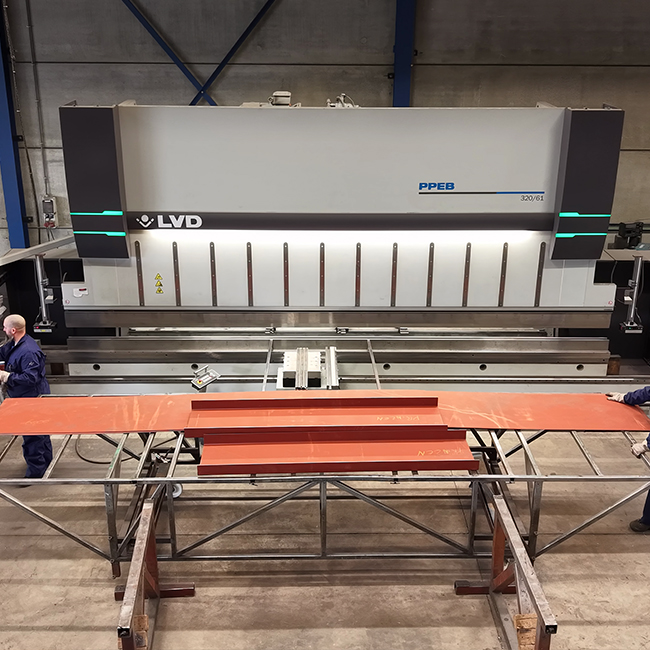 Onze plooiafdeling vormt stalen platen volledig op maat en met grote precisie. Dankzij ons moderne machinepark kunnen we zowel eenvoudige als complexe plooibewerkingen uitvoeren met een constante kwaliteit.