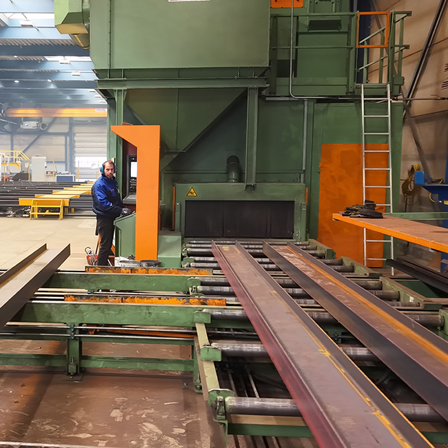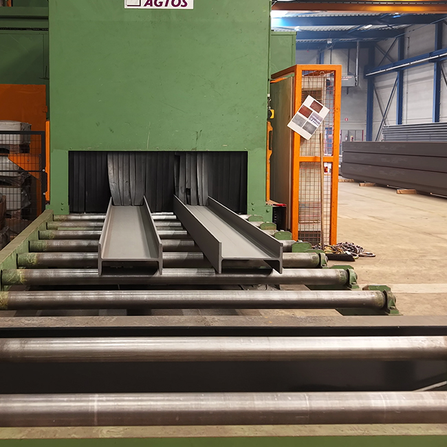 Voor een optimale hechting van de verflaag stralen we het staal grondig in onze straalmachine.