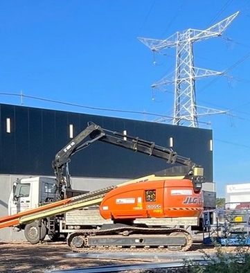 Ondanks de uitdagende werfomstandigheden — waaronder werken onder bestaande hoogspanningslijnen — zorgen zij opnieuw voor een nauwkeurige en veilige uitvoering.