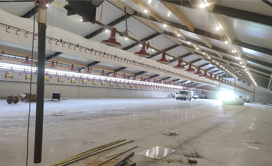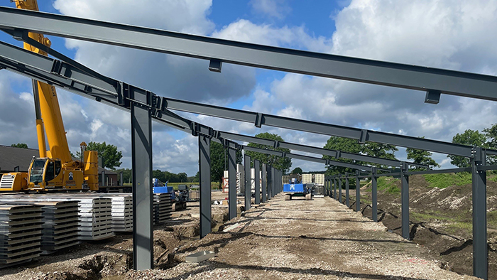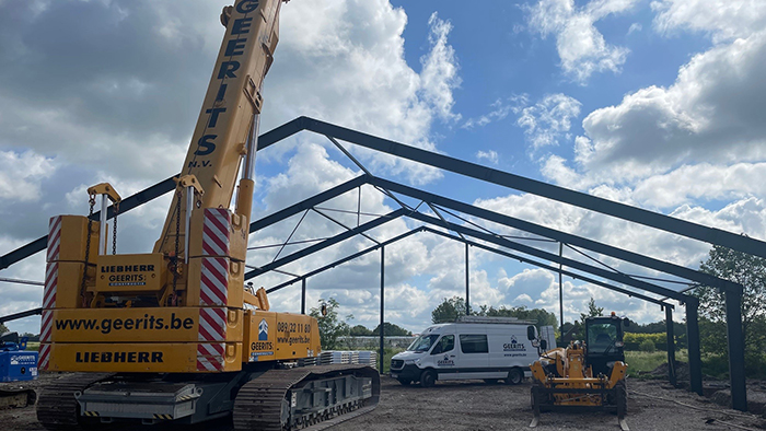 Voor Pluimveebedrijf Teeuwen in Nederweert (NL) startte Geerits Constructie met de bouw van een bijkomende vleeskuikenstal van ongeveer 2.200 m².
